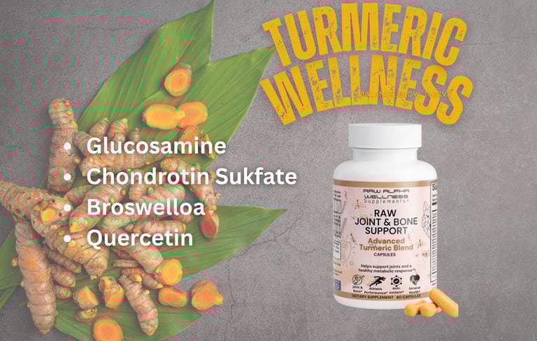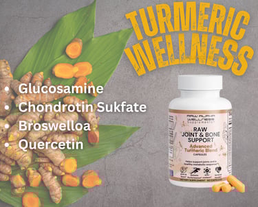 Our Raw Joint & Bone Support Advance Turmeric Blend is a blend of potent natural extracts that support joint health and a wholesome metabolic response, it is made up of multiple raw ingredients to support the entire bone and cartilage system.*